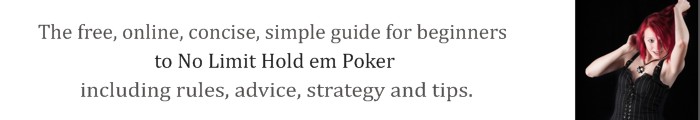 Introduction ![]() - Player Style descriptions - Tight/Aggressive style - Starting Hands - Video - Playing the flop - Playing the turn and river ![]() - Count your Outs - Pot Odds - Odds on the Turn and River - Using Percentages - Bet sizing, expressed versus implied odds ![]() - How to play a game - Poker hand rankings - Terminology and definitions ![]() - No Limit Hold’em starting hands; the Next Generation - My Aces got cracked! - Can I fold KK preflop? - How to play JJ? - Playing AK, Big Slick - Should I move up to avoid the bad players? Part I - Way ahead / Way behind - What is ABC poker? |